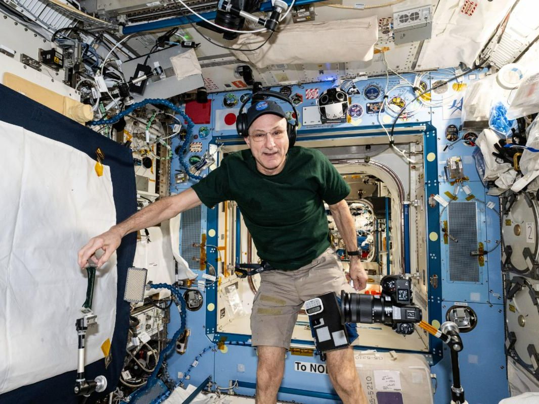 NASA astronaut and Expedition 72 Flight Engineer Don Pettit sets up camera hardware to photograph research activities inside the International Space Station's Kibo laboratory module on March 15, 2025. Credit: NASA