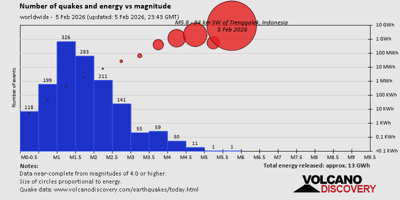 Earthquake stats https://www.volcanodiscovery.com/earthquake/news/293932/World-Earthquake-Report-for-Thursday-5-February-2026.html