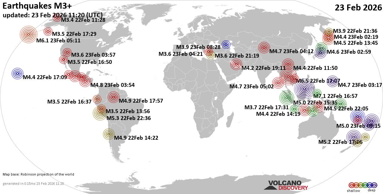 World Earthquake Report for Monday, 23 February 2026