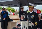 NORMANDY, France — Rear Adm. Keith Davids, commander, Naval Special Warfare Command, delivered remarks during a ceremony to dedicate the Naval Combat Demolition Units (NCDU) and Scouts & Raiders (S&R) Monument Park at Omaha Beach, May 30. Source: Naval Special Warfare Dedicates Normandy NCDU, S&R Monument Park