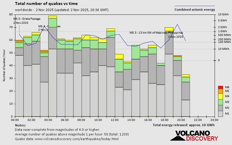 Volcano earthquake report for Sunday, 2 Nov 2025 Webmaster 3 hours ago