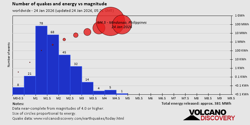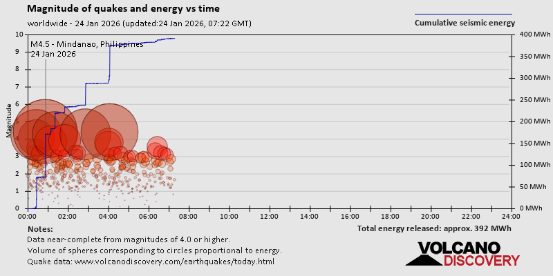 World Earthquake Report for Saturday, 24 January 2026
